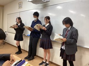 現在はグループごとに課題を立て、工夫をしながら朗読に励んでいます。