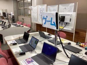 私たちはコンピューター室で活動しており、主にパソコンやiPadを使って、プログラミングでゲームを作成したり、アニメーションや動画制作を行ったりしています。