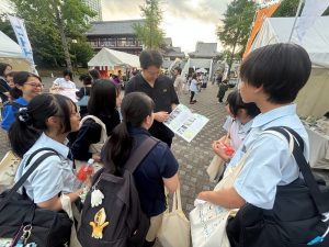 学校で出た紙パックをお水に変えてもらったり、寄付につながるキャンドルカバー作りをしました。 どのような取り組みがあるかを自分たちの目で確かめることができ、生徒会活動への新しいアイデアがたくさん思いつきました。 これからも環境に関する活動に力を入れていきます。