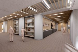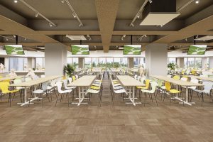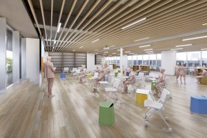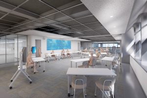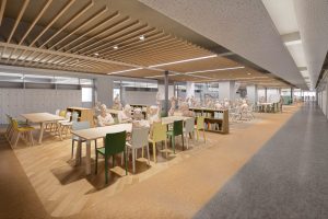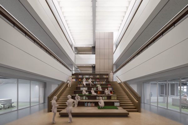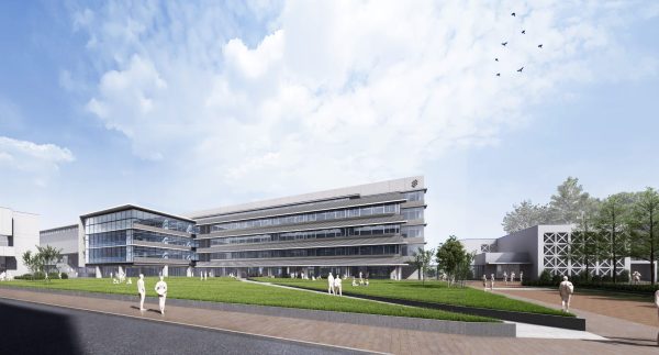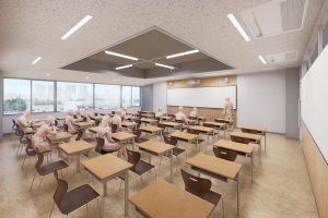 地上5階、地下1階の新築校舎で、普通教室、特別教室はもちろん、最先端のラボや多様なラウンジ空間、カフェや体育館等を収容し、既存校舎に比べ約1.4倍の規模となります。このなかで、私たちが推し進める、5つのチカラの伸長、PBL、英語・国際教育、理数・ICT教育を最高の形で実現していきます。